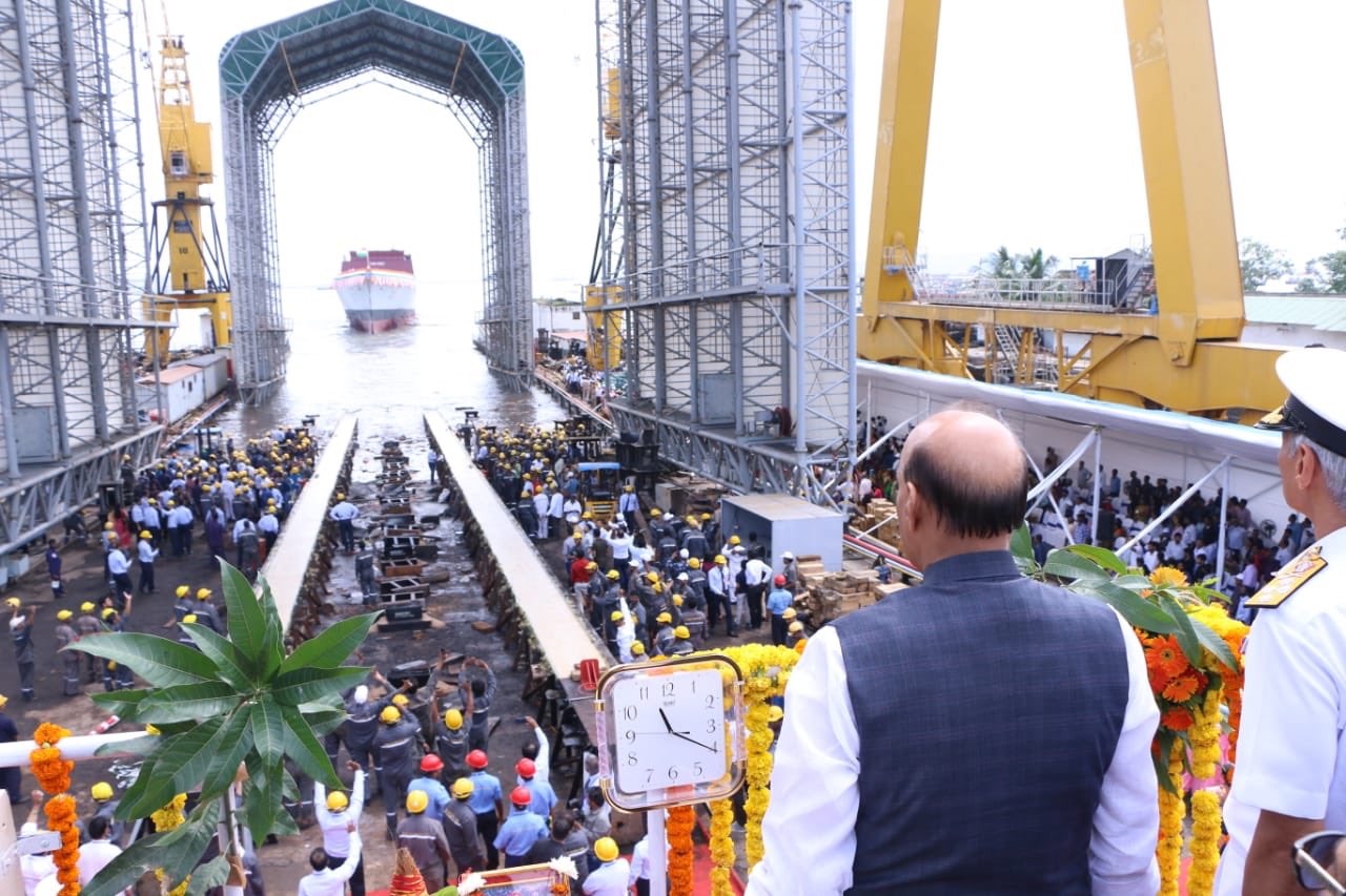 當地時間9月28日,印度國防部長拉傑納特·辛格、印度海軍參謀長卡蘭比爾·辛格海軍上將等多名印度官員參加了印度海軍內埃拉吉里“Nilgiri”號的下水儀式,該艦是印度海軍P-17A項目隱形導彈護衞艦首艦。