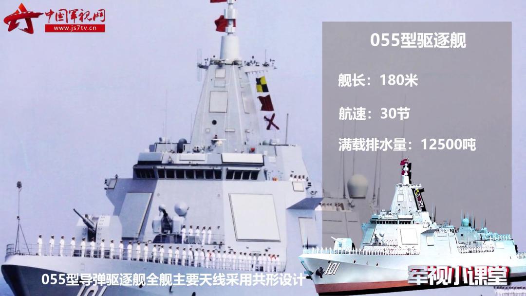 055型導彈驅逐艦全艦主要天線採用共形設計,具有較高的信息化水平及隱形性能,可組織遠、中、近三層先期預警防禦網,並有較強的防空、反導、反潛、反艦、攻陸和電子戰能力,還可以在除極區外無限航區遂行作戰任務。