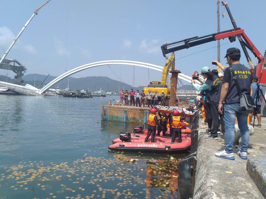 據台灣"中時電子報"3日報道,今天上午11時許,台救援人員在堤防消波塊附近,發現最後一位漁工遺體,搜救工作宣告終止。報道稱,截至目前,大橋坍塌事故已造成6人死亡,12人重傷。