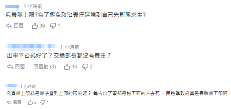 針對林佳龍同意吳宗榮請辭一事,有網友質疑稱,是究責無上限?還是為了避免責任延燒到自己先斷尾求生?出事下台就好了?“交通部長"就沒責任?↓