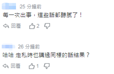 對於林佳龍這些話,有島內網友諷刺:每次一出事就是這些話,都聽膩了;(香煙)走私時也講過同樣的話,結果呢?↓