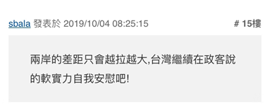 還有網友感嘆,“兩岸的差距只會越拉越大,台灣繼續在政客説的軟實力自我安慰吧!”↓