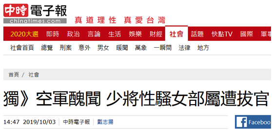 台軍再曝醜聞,少將涉嫌性騷擾被多位女部下舉報後調職