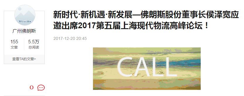 據註冊名為“廣州佛朗斯”的用户在搜狐自媒體平台上發佈文章稱,2017年12月19日,由上海現代服務業聯合會與上海物流企業家協會聯合舉辦的第五屆上海現代物流高峯論壇在上海舉辦,戴雲保先生代表佛朗斯董助,上海分公司總經理出席。