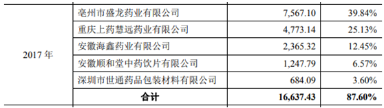 根據招股書披露,“亳州市盛龍藥業有限公司”始終都是三力製藥的第一大供應商,2017年採購佔比最高時一度達39.84%,2019年上半年的採購佔比仍然高達28.88%。