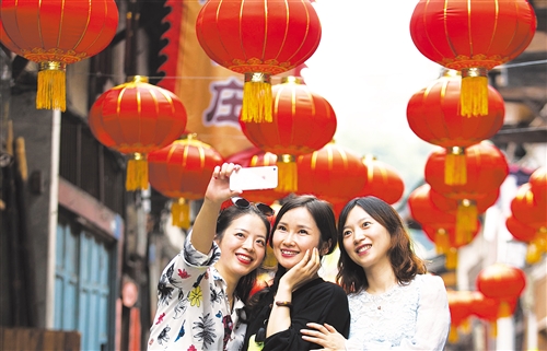 10月6日,遊人在重慶市北碚區偏巖古鎮遊玩。國慶長假期間,北碚區不少市民避開高峯擁堵,紛紛選擇近郊出遊,享受假日休閒時光。 秦廷富攝(中經視覺)