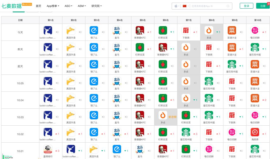 移動增長整體解決方案服務商七麥數據顯示,從9月8日至10月8日,整整30天,瑞幸咖啡(lukin coffee)在App store的“美食佳飲”榜單上霸榜首位長達27天,其中包括了國 慶長假中的6天。