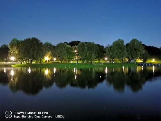 而夜拍方面,華為Mate30 Pro更是無愧於夜視儀的稱號,在人眼幾乎看不到任何東西的黑夜河對岸,藉助華為Mate30 Pro,對岸的景象能夠一目瞭然。