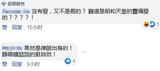 此外,網友留言嘲諷,“沒有發,又不是假的?難道是昭和天皇的靈魂發的?”、“睜眼瞎話説的挺自然”!