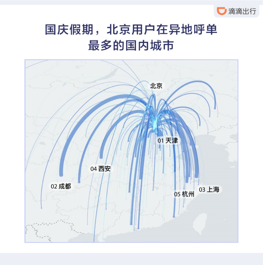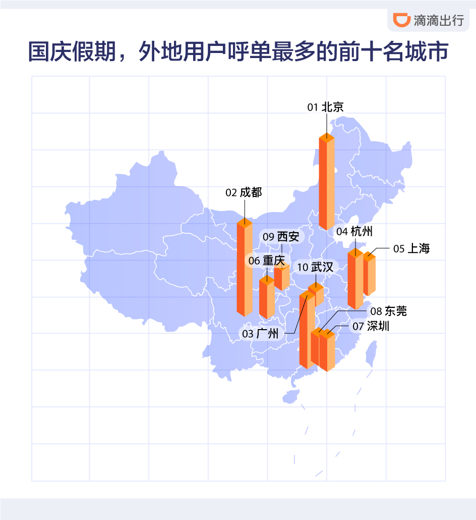 滴滴發佈國慶假期外地用户呼單城市排名 北京為全國熱門目的地
