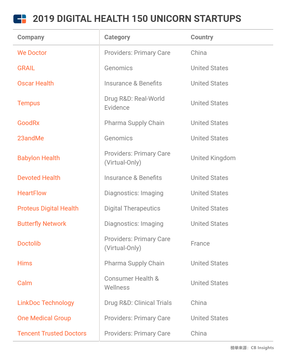 CBInsights公佈全球數字健康150強,中國企業微醫名列前茅