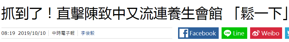 “中時電子報”報道提到,陳致中在議會質詢市長韓國瑜時,質疑韓請假參選是拋棄高雄市民,但自己卻在議會開議期間,跑到會館“放鬆一下”。報道稱,這難免讓人有“雙重標準”的質疑。