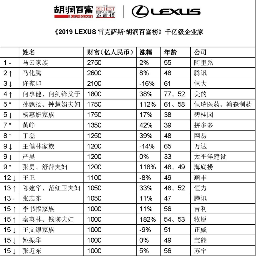 2019胡潤百富榜發佈:馬雲第三次成中國首富