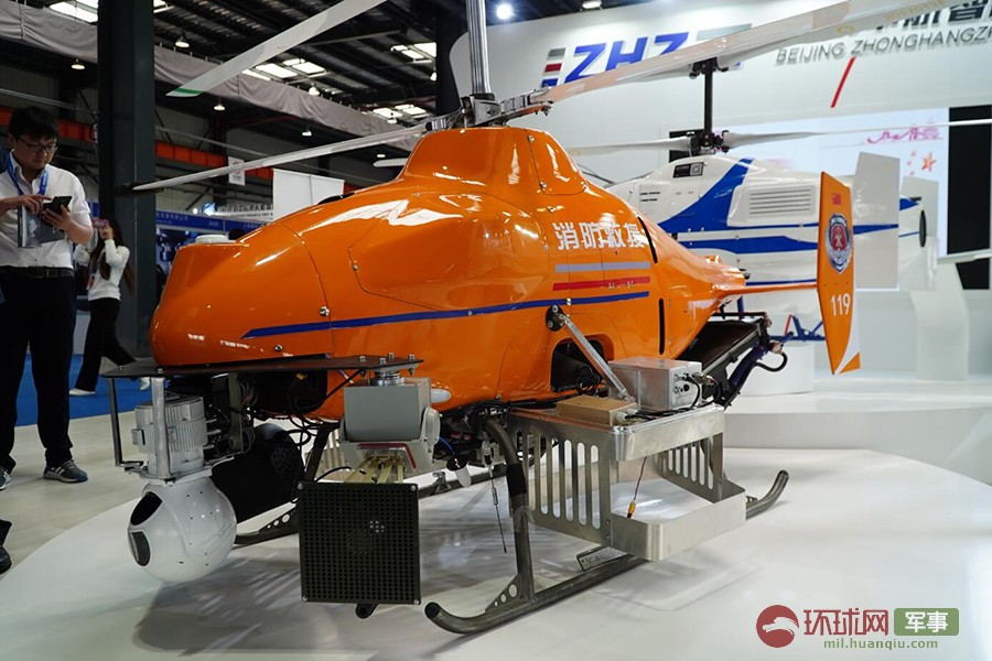【環球網報道 記者 徐璐明】2019天津直博會10月10日隆重開幕,直升機雖然是歷屆直升機博覽會的主角,但現場參展的還有不少無人機展品,而其中最引人關注的是專門用於城市高樓消防滅火的無人機。隨着城市樓房的高度越來越高,高樓的消防滅火成為了一大難題,高空滅火無人機在這一方面可以提供有效的解決方案。