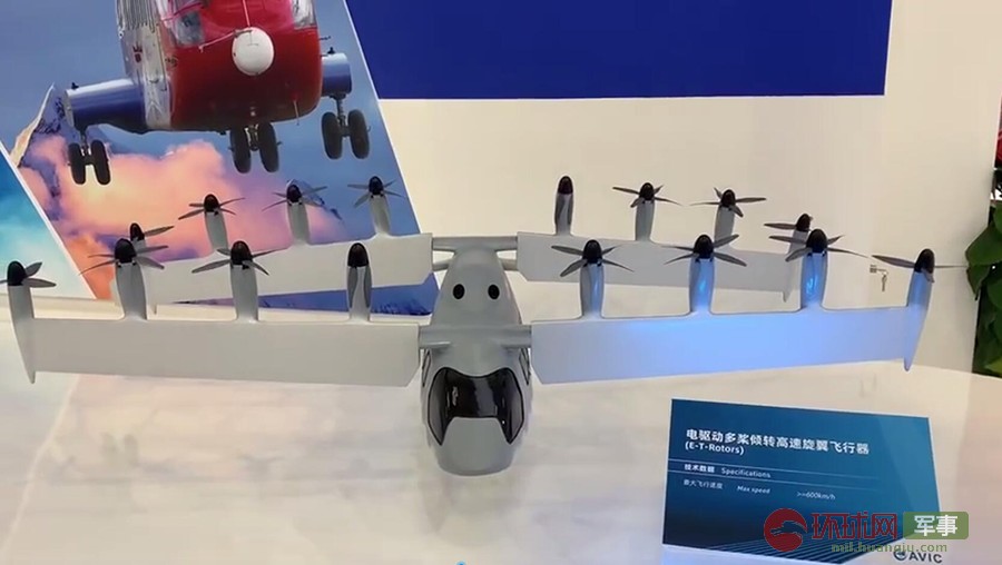 在展會現場,工作人員演示了該機機翼從水平到垂直狀態的切換過程,給人的感覺如同電影中的未來科技,相當科幻。據現場人員介紹,這款多槳傾轉高速旋翼飛行器正處於研製之中,其採用的螺旋槳摺疊技術在世界範圍內都算比較先進,除了具備垂直起降、短距起飛能力外,還可實現高速飛行,可有效遂行快速遠程運輸任務,未來在軍用民用領域都有較好的應用前景。