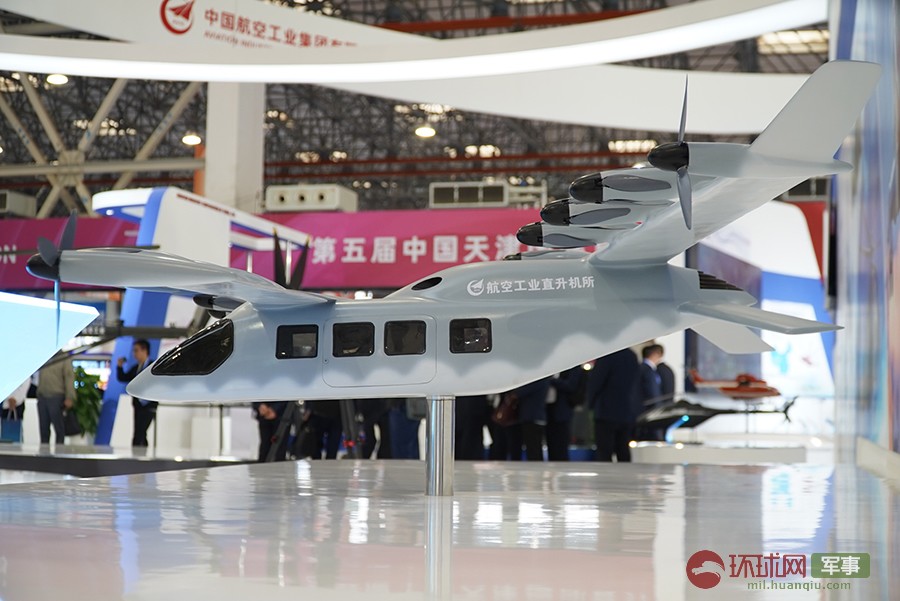 【環球網報道 記者 徐璐明】2019天津直博會10月10日隆重開幕,在航空工業集團展區,一款裝備了16個螺旋槳的飛行器模型引人注目。據介紹,這是一款電驅動多槳傾轉高速旋翼飛行器,該飛行器綜合利用了傾轉機翼與分佈式電驅動概念實現600千米/小時以上飛行速度的新型旋翼飛行器。全機採用串列式可傾轉旋翼佈局,兩對機翼上對稱安裝了16個電驅動旋翼,其中12個用於垂直起降的多個分佈於前後機翼上,高速前飛時摺疊收藏;用於提供前飛推進動力與低速姿態操縱的4個電驅動螺旋槳分佈於前後機翼翼尖處。