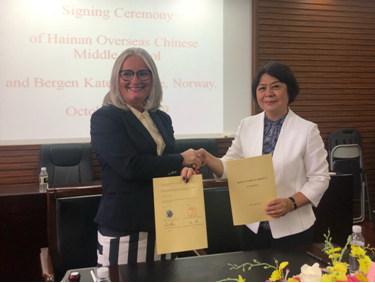 海南華僑中學與挪威卑爾根卡特德拉高中籤署合作協議