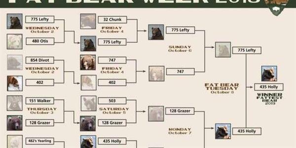 美國阿拉斯加Katmai國家公園每年都有一個票選最胖棕熊的活動,取名為“胖熊周”,今年的冠軍也出爐了,有着“胖皇后”之稱的435號Holly奪魁,1.75萬票遠超第二名的3600票。