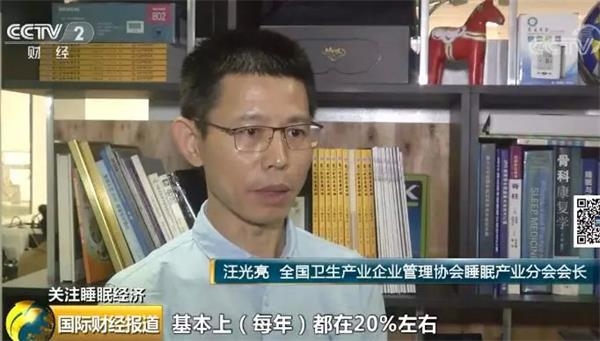 全國衞生產業企業管理協會睡眠產業分會會長汪光亮:睡眠產業這些年的增長基本上每年都在20%左右,現在很多人開始對睡前進行投資,這個市場還是蠻有想象力的。