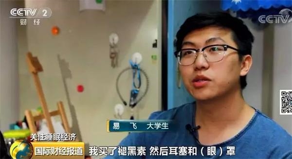 大學生易飛:就連續兩天沒有睡覺,可能也是因為當時壓力有點大,主要是出國的壓力,還有室友在考研,他把燈一開,我就精神了,睡不着了。