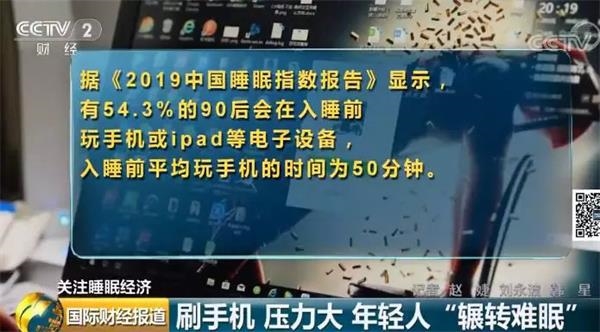 據《2019中國睡眠指數報告》顯示,有54.3%的90後會在入睡前玩手機或ipad等電子設備,入睡前平均玩手機時間為50分鐘。夜晚已經成為90後尋找自我、釋放壓力的窗口。此外,“宅”、缺乏運動、夜生活豐富也是原因之一。
