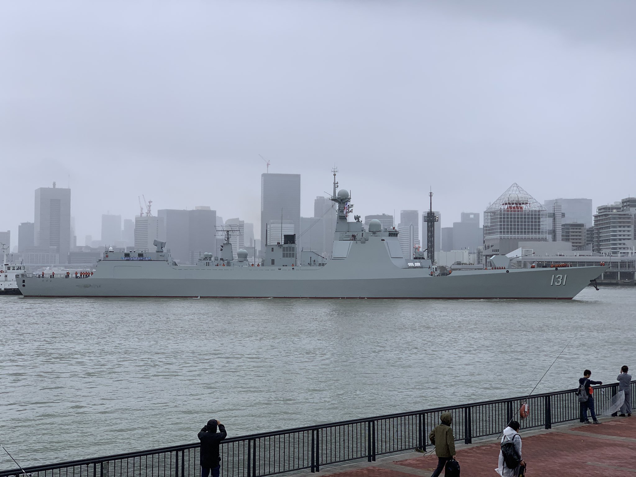 據共同社10月13日報道,日本防衞大臣河野太郎10月13日説,在台風“海貝思”席捲該國大片區域後,日本海上自衞隊取消了國際艦隊閲艦式。中國海軍派出052D型驅逐艦太原艦參加此次閲艦式,因受颱風影響閲艦式被迫取消,太原艦此時也只能駛入東京晴海碼頭,但日本網友卻拍到了太原艦上讓人暖心的一幕。