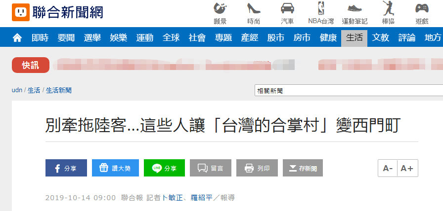 台灣《聯合報》以此為由頭,發佈了這篇題為"別牽拖陸客…這些人讓’台灣的合掌村’變西門町"的報道。↓
