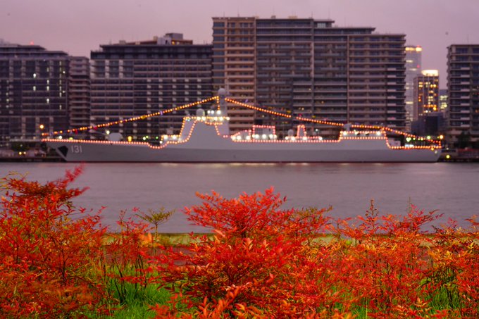 此次日本海上自衞隊主辦的國際艦隊閲艦式雖然未能如期舉行,但前來的各國艦艇仍繼續開展軍事交流活動。太原艦抵達東京晴海碼頭後,也引起了日本媒體和民眾圍觀。而此時颱風“海貝思”仍在日本部分地區肆虐,太原艦官兵也在艦身一側掛出了雙語條幅,上面用中文和日文寫着“慰問颱風受災民眾,祝願災區早日重建”的字樣,讓不少日本網友向太原艦“道謝”。而在進入港口的夜間,太原艦也開啓了全艦燈飾,燈光顏色變幻,展現出了中國戰艦鋼鐵外衣下的温情和關懷。