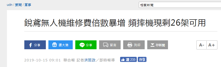 對台軍此等醜聞,台灣《聯合報》報道時調侃稱,“鋭鳶無人機”維修費倍數暴增、台軍“頻摔機”。