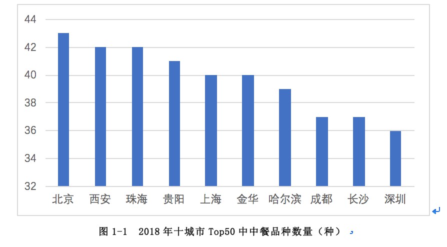 隨着我國人民生活水平的提高和外賣餐飲行業的進一步發展,外賣消費食品種類和菜品膳食結構都更加多樣且健康。這份中國農業大學食品學院何計國團隊發佈的《我國10城市高頻外賣消費菜品膳食結構分析》中,和北京一樣,這十城通過美團外賣訂餐的消費者,多數會選擇中餐,其中2018年我國十城美團外賣訂單餐次品種達397個,佔TOP50總體500個的79.4%。從餐種來看,十大城市中,北京市最多,有43種。