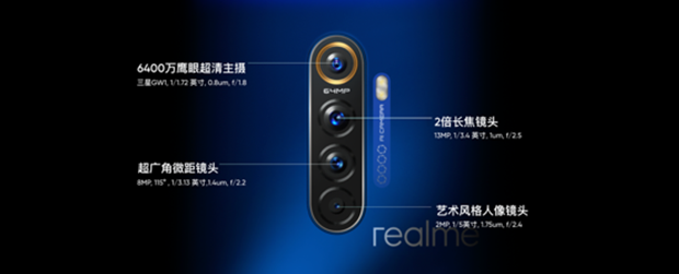 超鷹眼,全能拍!realme X2 Pro後置採用6400萬主攝+長焦鏡頭+115°超廣角微距鏡頭+人像鏡頭的變焦四攝組合,6400萬像素f/1.8大光圈主攝,捕捉極清世界,藉助“像素四合一”獲得1.6μm超大像素,輔以“超級夜景2.0”做到日夜皆出色;800萬像素超廣角/微距鏡頭,見微識廣,擁有1.4μm超大像素,115°超廣角輕鬆納天地,2.5cm超微距直達微末;1300萬像素變焦鏡頭,實現5倍混合光學變焦和最大20倍混合變焦;人像鏡頭藉助“濾色系統”,獲取更多光線信息,輔助主攝,增添人像質感。