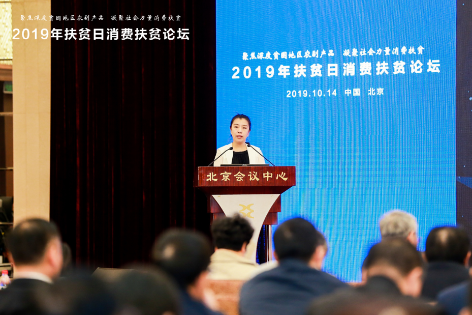 10月14日,2019年扶貧日消費扶貧論壇在北京會議中心舉辦,此次論壇由中國扶貧志願服務促進會承辦,主題為“聚焦深度貧困地區農副產品,凝聚社會力量消費扶貧”。論壇主持人中國扶貧志願服務促進會王家華副會長表示,為貫徹落實國務院辦公廳《關於深入開展消費扶貧助力打贏脱貧攻堅戰的指導意見》精神,落實國務院扶貧辦關於消費扶貧工作部署,目的在於協調社會各界力量,架起一座扶貧彩橋, 為深度貧困地區優質特色農副產品樹立品牌、擴大知名度,走出大山,來到百姓餐桌創造條件。