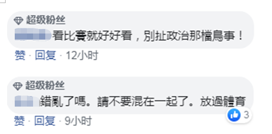 有網民則怒斥,看比賽就好好看,別扯政治那檔事;錯亂了嗎?放過體育↓