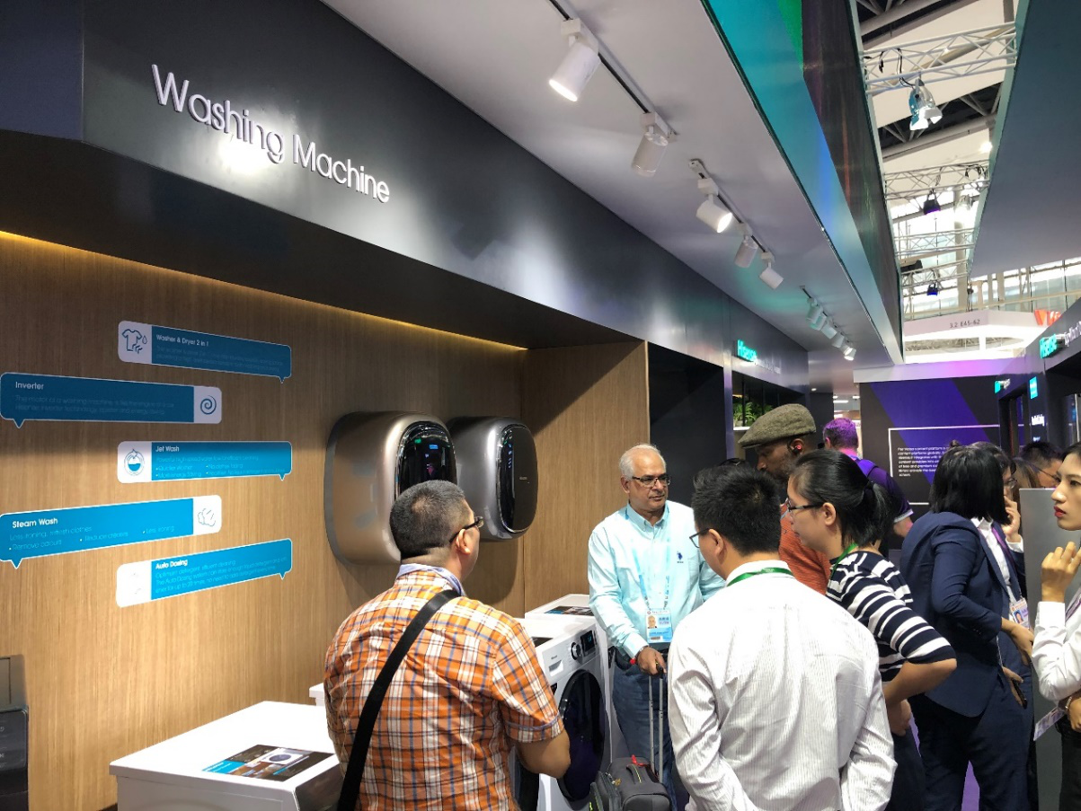 “Jet Wash(旋瀑洗)功能太實用了!”在洗衣機區域,來往的參觀者都會逗留並打開滾筒門觀看。本次展會上,海信重點展示的PureJet系列新品不僅對外觀進行了優化,還配置了各項洗衣核心功能,讓洗衣機更符合國外消費者的使用需求。該系列的洗衣機都配置的旋瀑洗功能,完美解決了洗衣液殘留和融化洗衣污跡等難題;蒸汽洗功能則減少洗衣過程中的褶皺,洗完後衣服可直接穿。變頻技術一直是洗衣機的核心,如同汽車中的發動機,它保證了洗衣機的壽命及提高了洗衣效率。