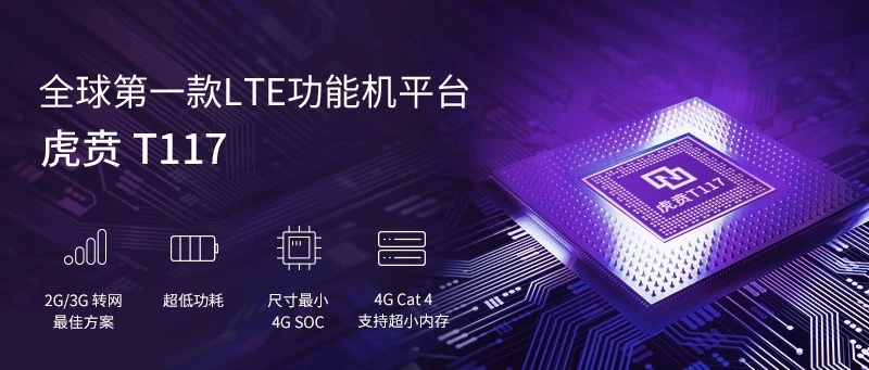 虎賁T117支持LTE/WCDMA/GSM網絡,採用RTOS、超低功耗設計,集成BT/FM和多媒體功能,並內置LPDDR,是業內尺寸最小的4G SOC平台,支持LTE CAT4以及VoLTE高清語音通話,為2G/3G轉網用户提供更加優質的語音通話體驗。同時,虎賁T117支持雙4G卡,是全球2G或3G用户向4G轉網的良好解決方案。
