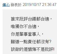 不過也有人認為,他作為當事人,出來批評台鐵不合適。