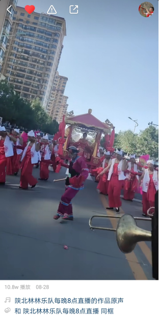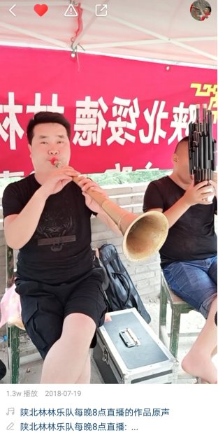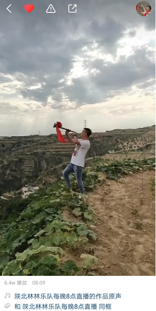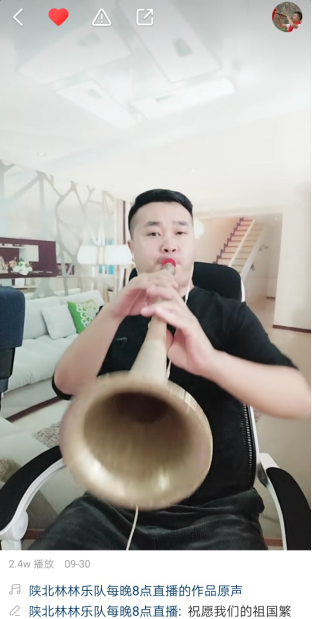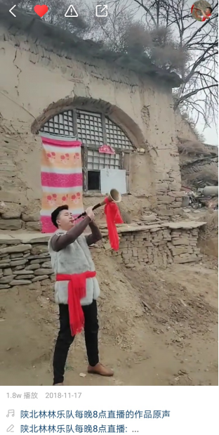 隨着粉絲數的增加,張喜林的名氣也越來越大。“以前只是村子周圍的人找我,不少人在快手看到視頻後,現在西安、銀川等榆林周圍的城市也會有人找我演出。”憑藉對嗩吶的熱愛與堅持以及精湛的演奏,張喜林成了名副其實的快手“網紅”。“認識我的人多了,演出價格也高了些。”讓更多人聽見嗩吶的同時,張喜林也通過快手獲得更多經濟收入。從前張喜林最喜歡在空曠的地方,對着大山吹嗩吶,聲聲迴盪在山谷間。如今,在快手,只要手中嗩吶聲一響,便會餘音繞樑,連綿不絕。