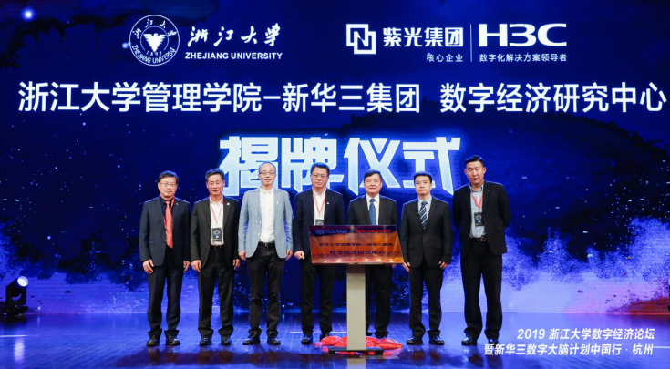 10月18日,“2019浙江大學數字經濟論壇暨新華三數字大腦計劃中國行•杭州站”在浙江大學舉行。期間,浙江大學管理學院與紫光旗下新華三集團共同成立的“浙江大學管理學院-新華三集團數字經濟研究中心”正式揭牌。