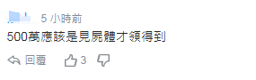 還有網友針對邱國正所謂的“不是擋一顆子彈就給500萬”直言:500萬是見到屍體才領得到↓