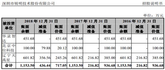 針對所持天禹星的入賬價值,鋭明股份在招股書中披露“對於新三板 掛牌公司遼寧天禹星,其期末賬面價值根據最近一次協議轉讓價格確定,但不低於期末每股淨資產”,但事實上,鋭明股份本次招股書披露數據截止到2018年末,當時天禹星的每股交易價格為0.37元、每股淨資產為1.88元,均比鋭明股份入賬價格2.45元要低。這與該公司在招股書中披露的關於長期投資的會計核算政策,並不相符。