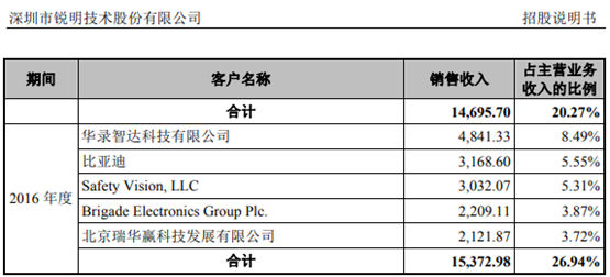 此外,鋭明股份在2018年9月還發布過一版招股書,其中披露2016年度第一大客户為“深圳中電投資股份有限公司”,涉及銷售金額高達5240.97萬元;但是在最新版招股書中,該客户卻並未出現在前五大客户名單中。類似的現象也存在於客户“Safety Vision, LLC”身上,最新版招股書披露2016年向該客户銷售3032.07萬元,但是該客户並未出現在2018年9月版招股書中。針對上述財務數據矛盾,鋭明股份並未接受記者的採訪。