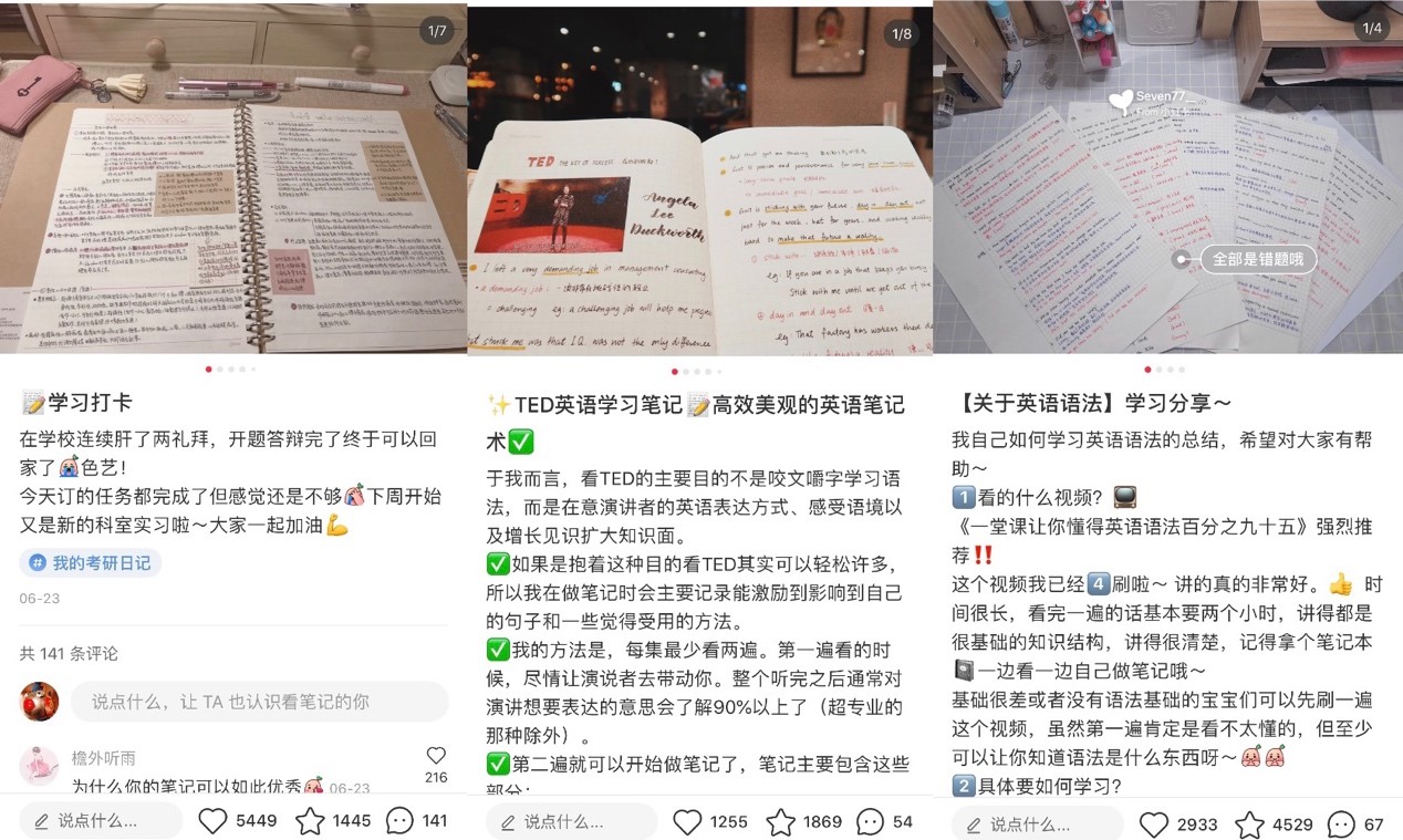 據瞭解,小紅書上年輕人最關注的熱門話題之一是學習,社區裏有近60萬篇學習相關的筆記,包括備戰考研、讀書分享、外語學習等不同類別的學習內容。僅去年一年,小紅書用户在社區學習打卡就超過10萬小時。