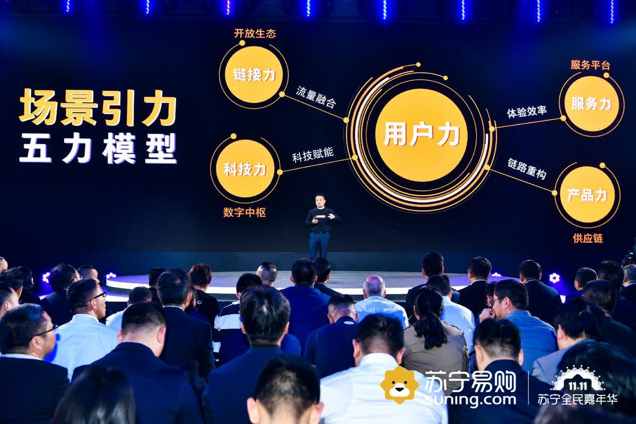 侯恩龍提出了場景零售五力模型的蘇寧思考,即場景零售的核心“五力”,分別是用户力、產品力、科技力、服務力和鏈接力。