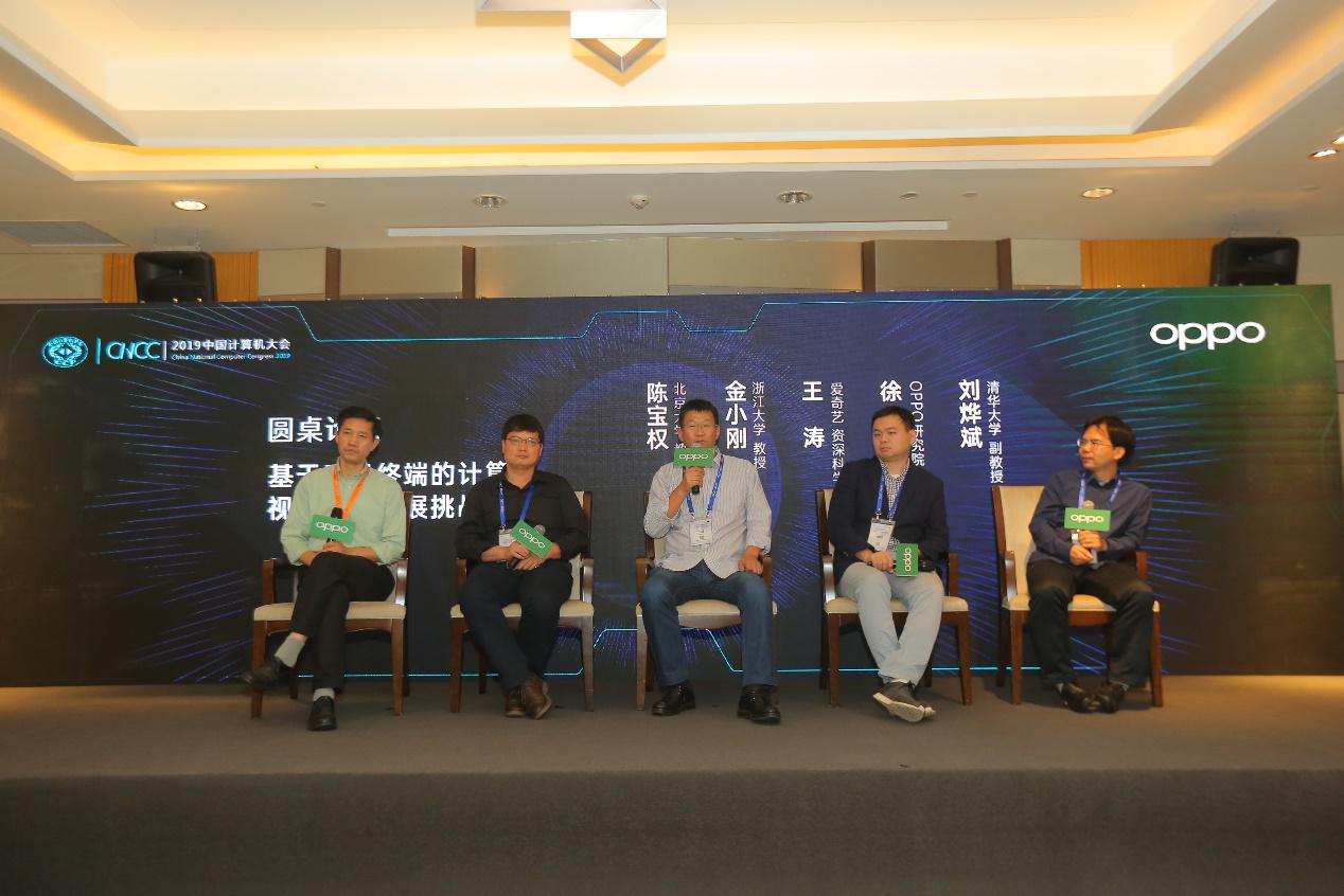 主題報告結束後,北京大學博雅特聘教授、前沿計算研究中心執行主任、CCF會士陳寶權,浙江大學教授金小剛,愛奇藝公司資深科學家王濤,OPPO研究院徐毅,清華大學副教授劉燁斌就 “基於手機終端的計算機視覺技術發展挑戰與機遇”主題進行圓桌討論,共同分享了三維重建、AR與AI技術結合、視頻製作、手機攝像頭等技術課題上的思考觀點,深入探討了構建以手機為核心的“萬物互融”新生態的洞察見解。