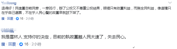 還有網友則表示支持蘇俊豪的決定,並稱民進黨忽略民意,只在乎選票,早就該下架↓