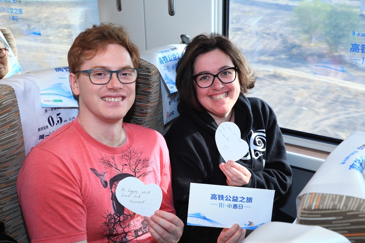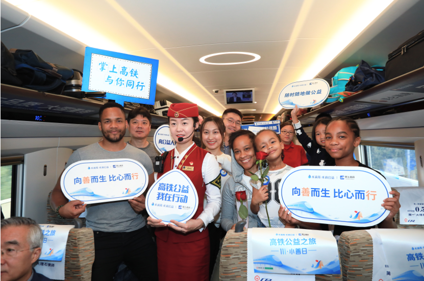 有位姓顧的旅客表示,“公益是每個普通人都可以參與的日常行為,有時候一個舉手之勞,就能給別人帶來大大的温暖。”通過參與高鐵公益之旅,向孩子們傳遞愛心祝福,讓孩子們瞭解高鐵這一令人驕傲的中國力量和中國速度,他覺得這趟高鐵旅途特別有意義。