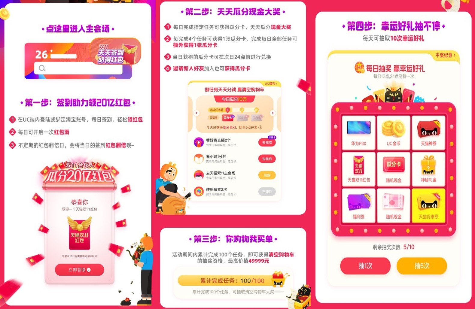 進入第十年的雙11,早已超越了購物大促,進化為影響全球的娛樂互動大Party。今年天貓雙11玩法主打簡單,UC助力用户分享20億雙11“合夥人”紅包。