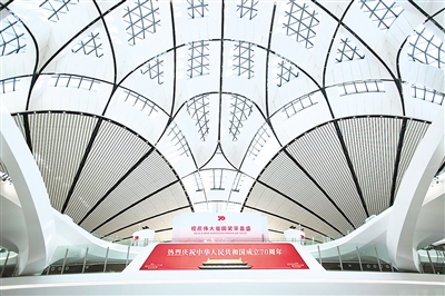 自9月25日通航以來,大興機場以其形似金色鳳凰的世界最大單體航站樓、硬核科技帶來的優質服務、世界首次實現“高鐵地下穿行機場”等創新點成為了中國面向世界的一張嶄新名片,被譽為“新世界七大奇蹟”之首。