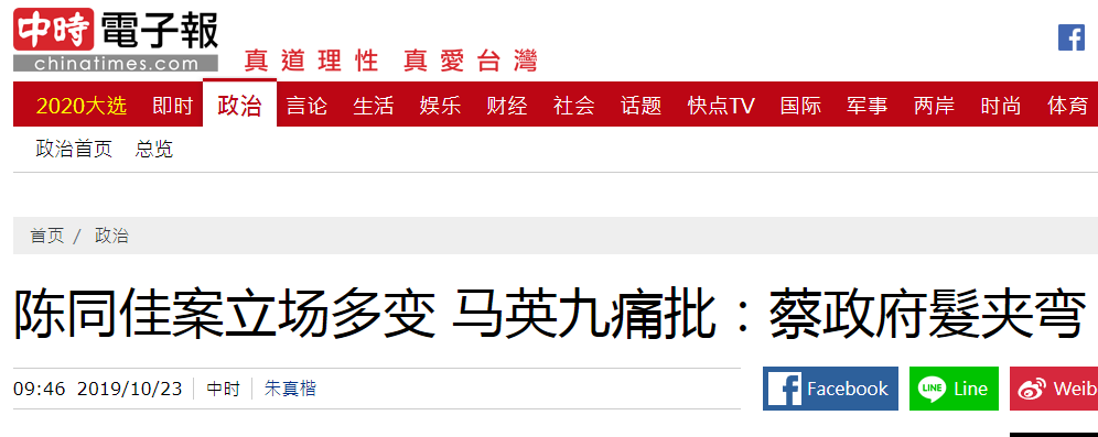 台媒:蔡當局對“陳同佳案”立場多變,馬英九痛批“髮夾彎”