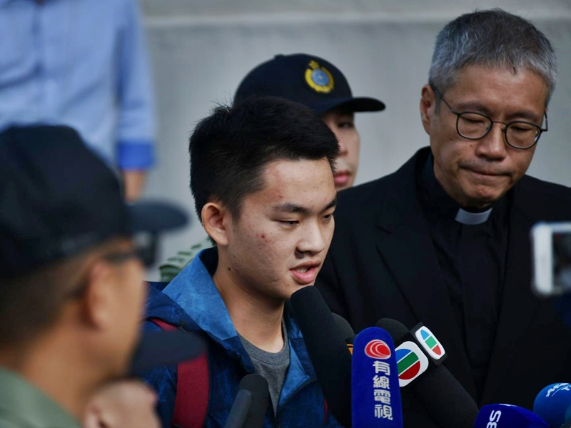 陳同佳出獄,在獄外做簡短説明(圖片來源:香港《星島日報》)